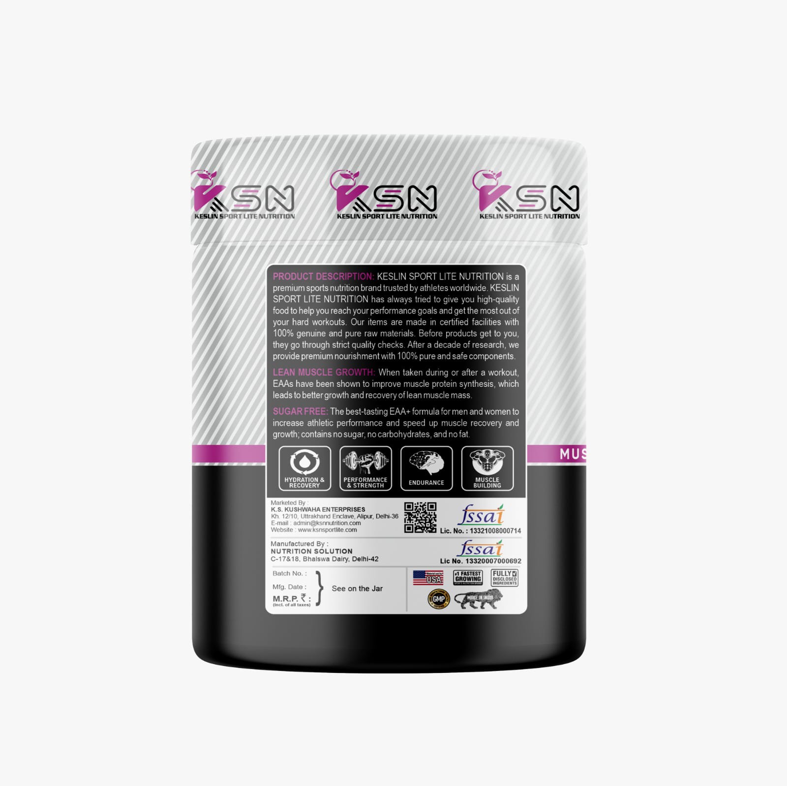 Keslin Sportlite Nutrition EAA is a premium dietary supplement formulated to support muscle recovery, growth, and overall athletic performance. It provides a full spectrum of the nine essential amino acids (EAAs) that your body cannot produce on its own. These amino acids are the fundamental building blocks of protein, making them crucial for a variety of bodily functions, especially for those with an active lifestyle.