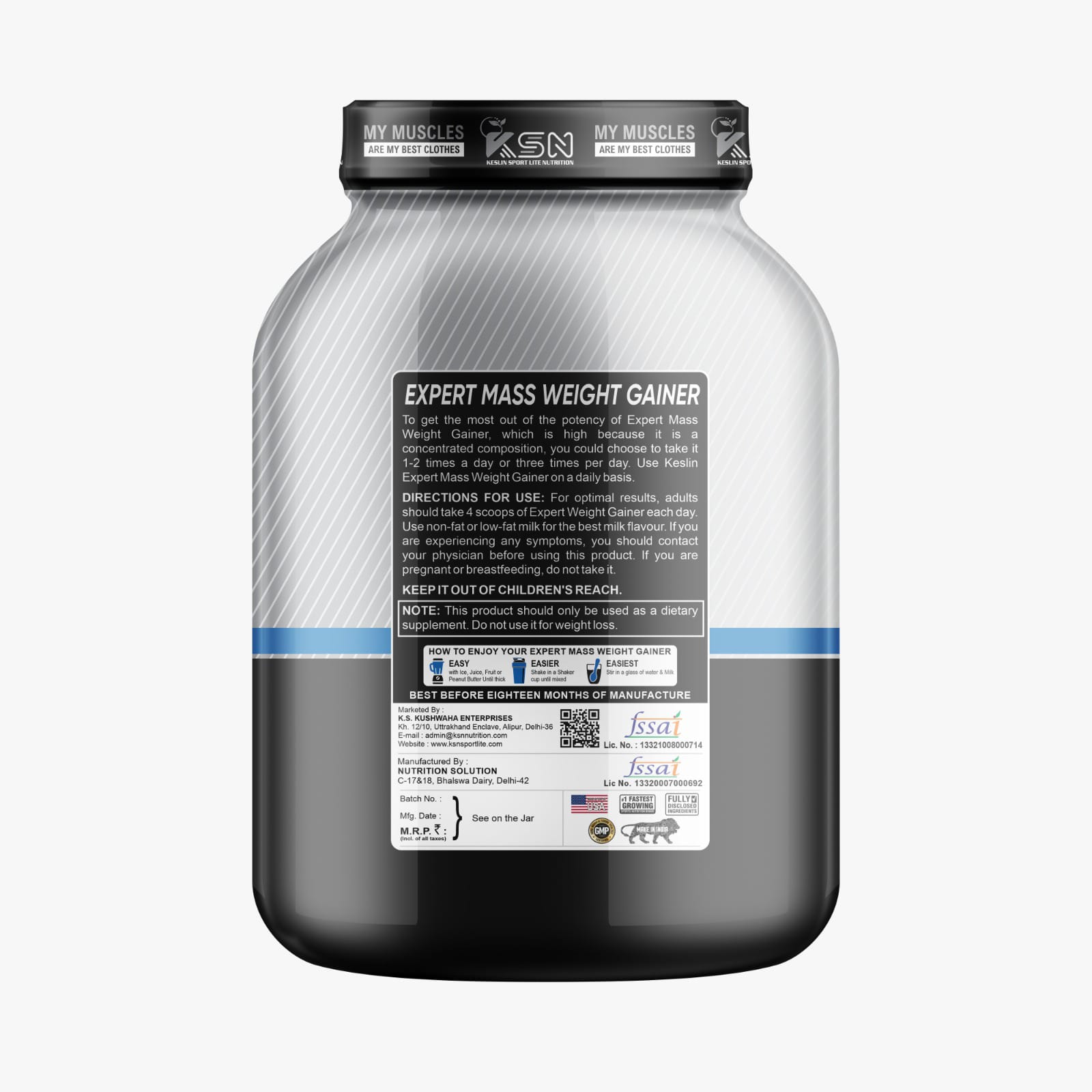 Expert Mass is a high-calorie, protein-packed supplement from KESLIN Sportlite Nutrition, designed to help individuals, particularly those with fast metabolisms or who struggle to gain weight, build muscle mass and strength. As a gainer, it provides the necessary caloric surplus to fuel intense workouts and promote muscle growth.